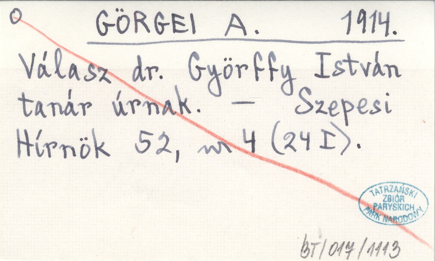GÖRGEI A. 1914 Válasz dr. Györffy István tanár úrnak.
