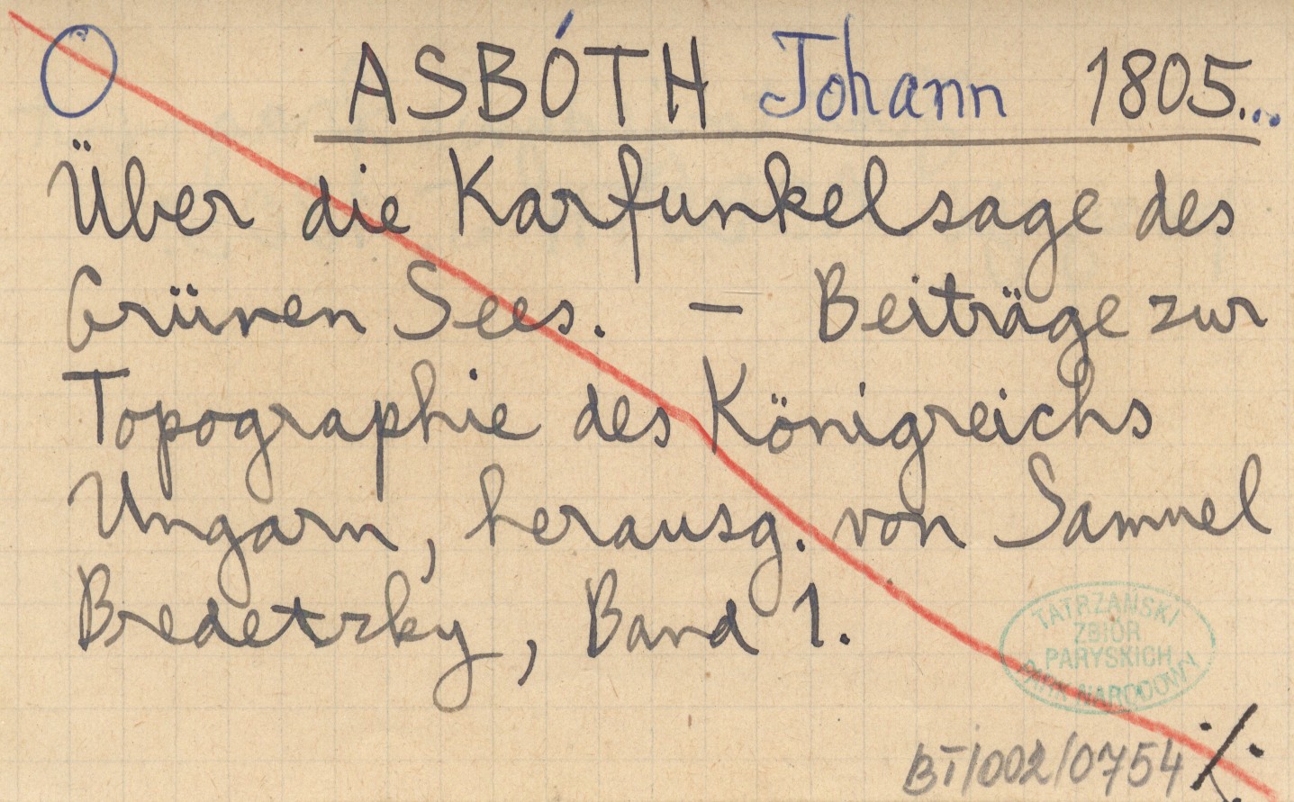 ASBÓTH Johann 1805... Über die Karfunkelsage des Grünen Sees.