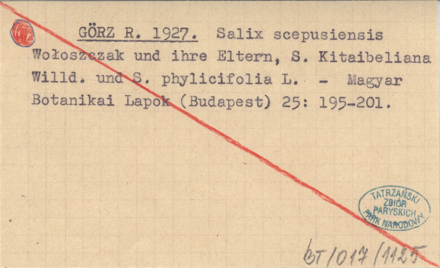 GÖRZ R. 1927 Salix scepusiensis Wołoszczak und ihre Eltern, S. Kitaibeliana Willd. und S. phylicifolia L.