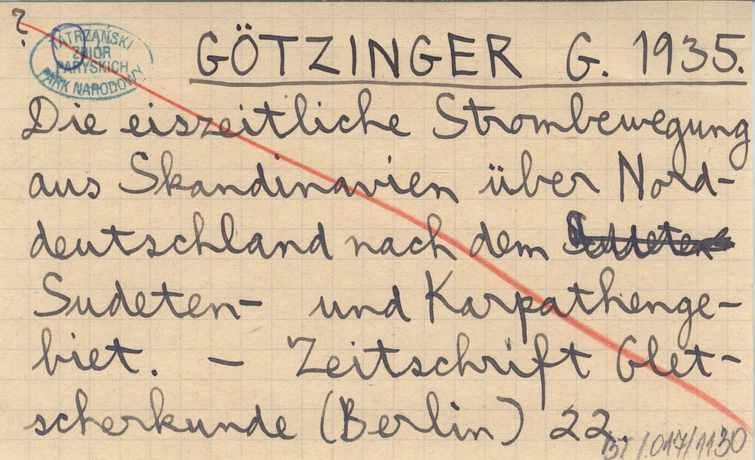 GÖTZINGER G. 1935 Die eiszeitliche Strombeuegung aus Skandinavien über Norddeutschland nach dem Sudeten- und Karpathengebiet.