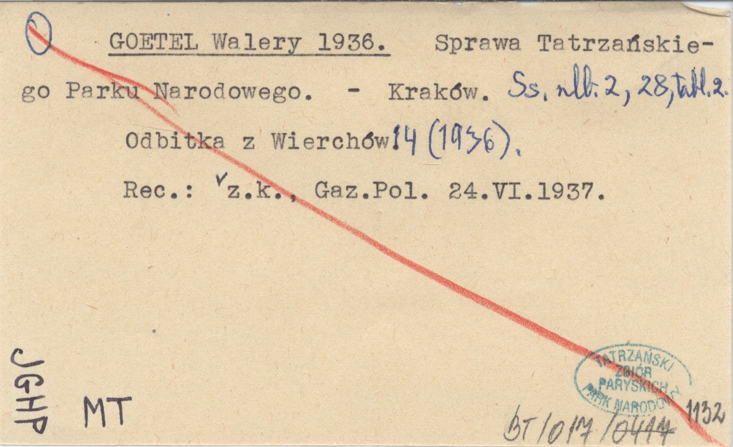 GOETEL Walery 1936 Sprawa Tatrzańskiego Parku Narodowego.