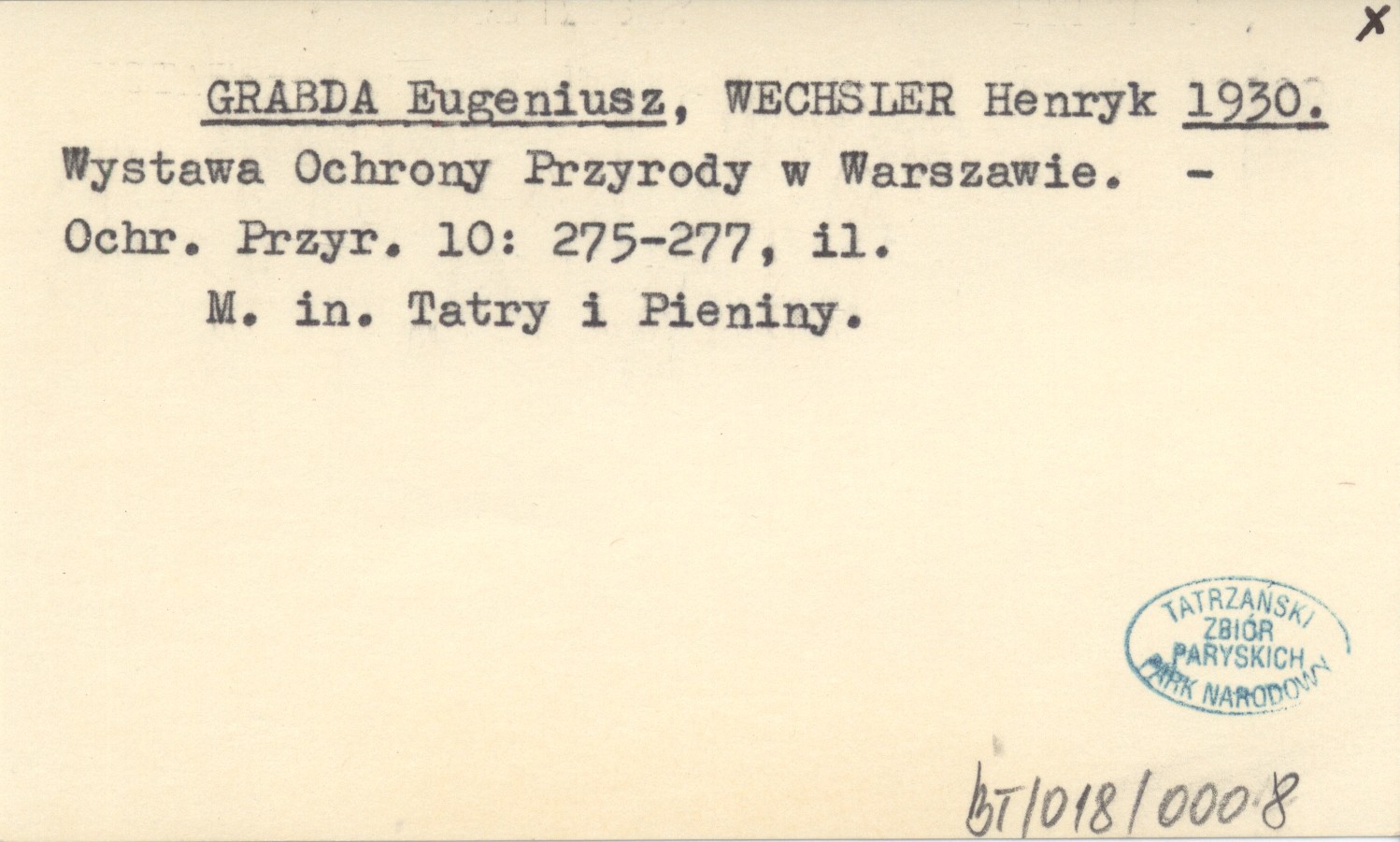 GRABDA Eugeniusz WECHSLER, Henryk. ; 1930 Wystawa Ochrony Przyrody w Warszawie.