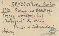 GRABCZYŃSKI Stefan 1912 Szanowna Redakcyo! Proszę uprzejmie [...].