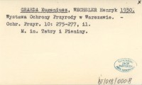 GRABDA Eugeniusz WECHSLER, Henryk. ; 1930 Wystawa Ochrony Przyrody w Warszawie.
