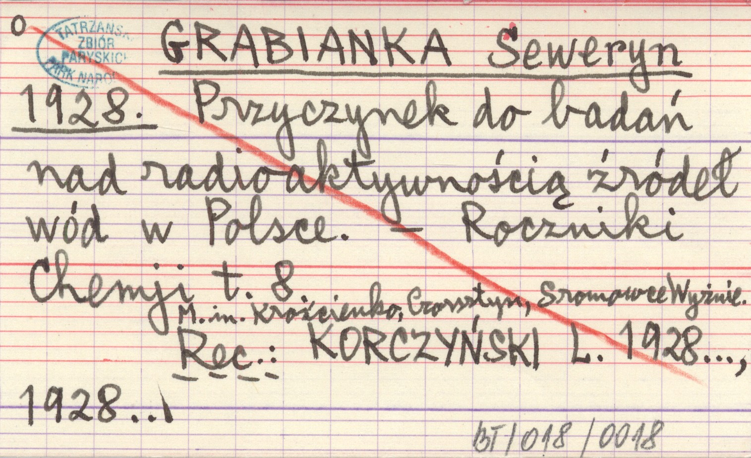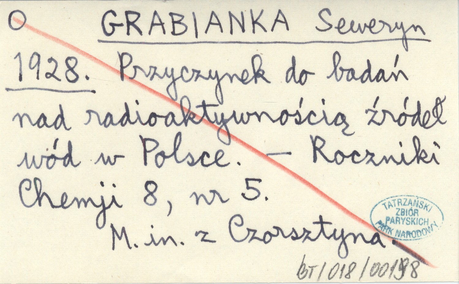 GRABIANKA Seweryn 1928 Przyczynek do badań nad radioaktywnością źródeł wód w Polsce.