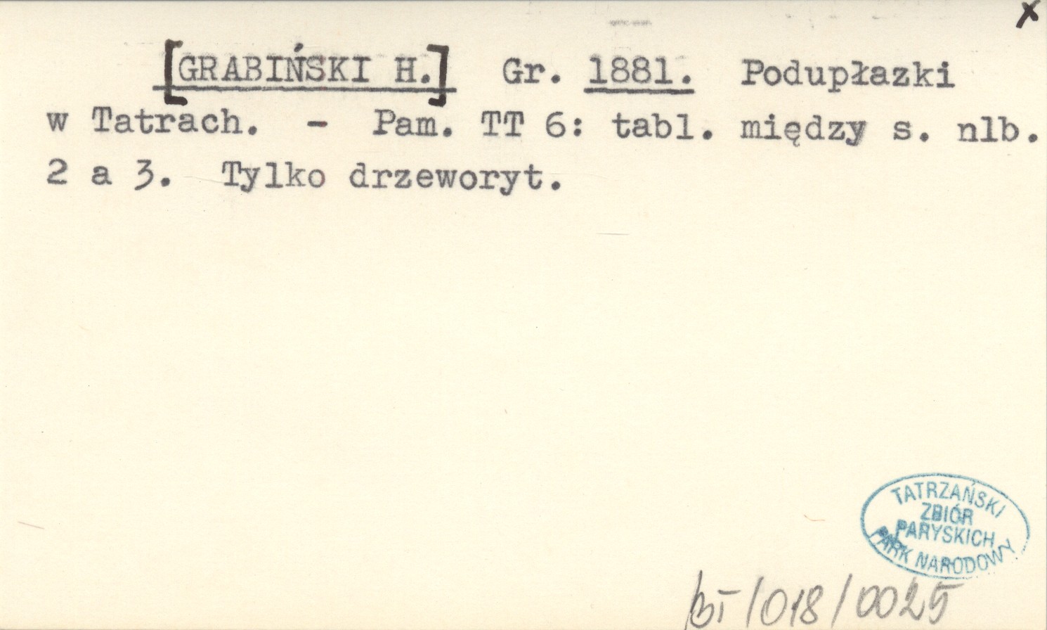 Pamiętnik Towarzystwa Tatrzańskiego, 6: [2-3] (1 k. tabl.). Tylko drzeworyt.
