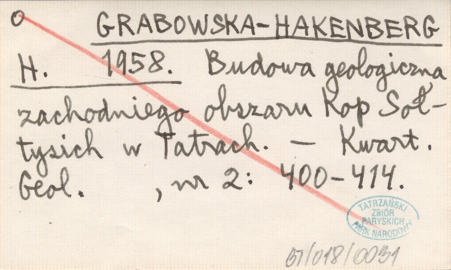GRABOWSKA-HAKENBERG H. 1958 Budowa geologiczna zachodniego obszaru Kop Sołtysich w Tatrach.