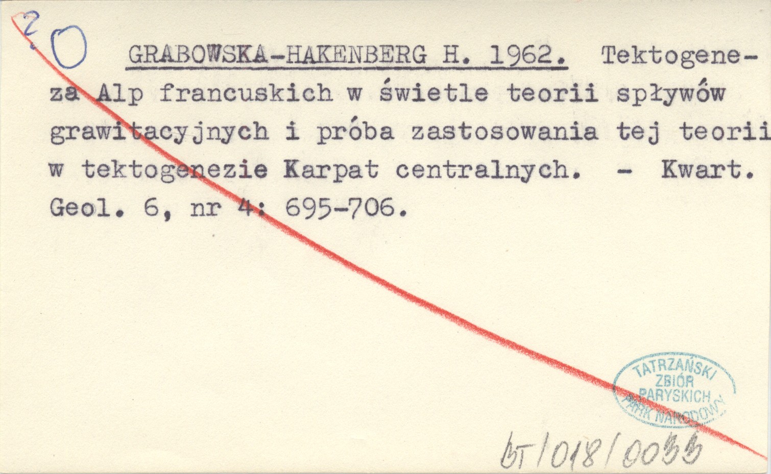 GRABOWSKA-HAKENBERG H. 1962 Tektogeneza Alp francuskich w świetle teorii spływów grawitacyjnych i próba zastosowania tej teorii w tektogenezie Karpat centralnych.