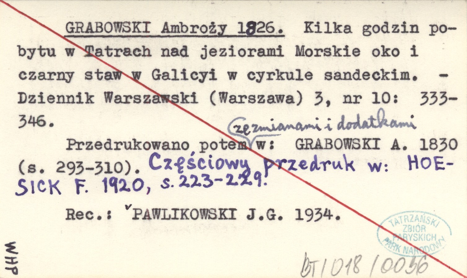 Projekt Digitalizacja fiszek z Bibliografią Tatr i Podtatrza Witolda Henryka Paryskiego jest finansowany ze środków Ministra Kultury i Dziedzictwa Narodowego oraz Tatrzańskiego Parku Narodowego.