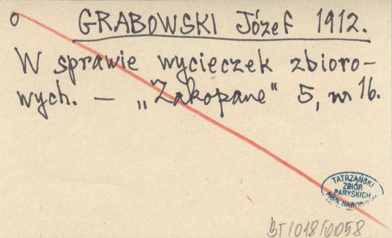 GRABOWSKI Józef 1912 W sprawie wycieczek zbiorowych.