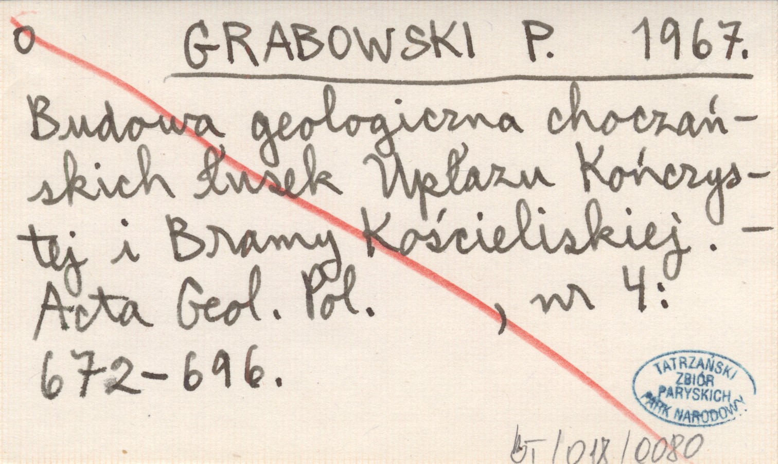 GRABOWSKI P. 1967 Budowa geologiczna choczańskich łusek Upłazu Kończystej i Bramy Kościeliskiej.