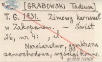 T. G. [GRABOWSKI Tadeusz] 1931 Zimowy karnawał w Zakopanem.