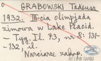 GRABOWSKI Tadeusz 1932 III-cia olimpjada zimowa w Lake Placid.