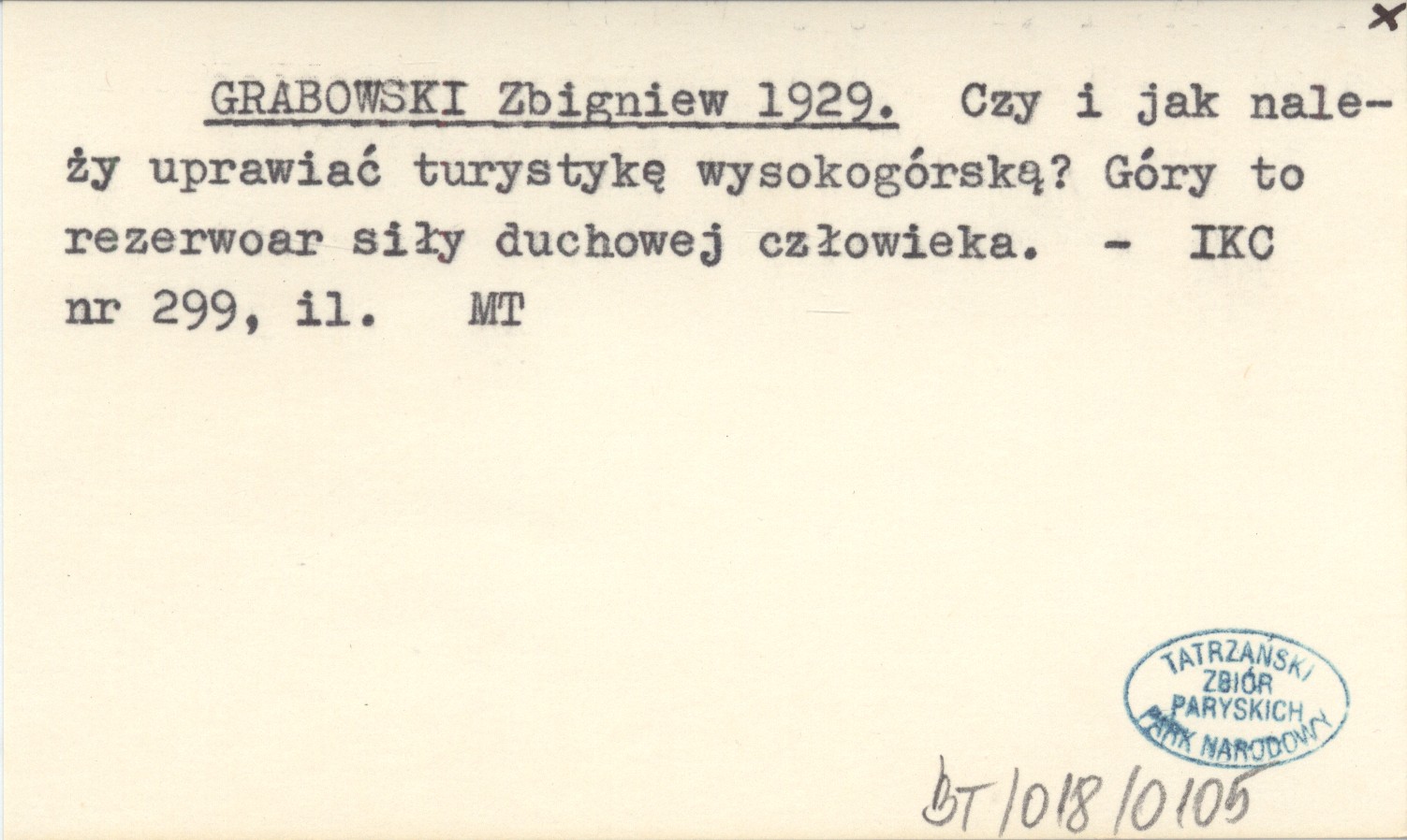 GRABOWSKI Zbigniew 1929 Czy i jak należy uprawiać turystykę wysokogórską? Góry to rezerwoar siły duchowej człowieka.