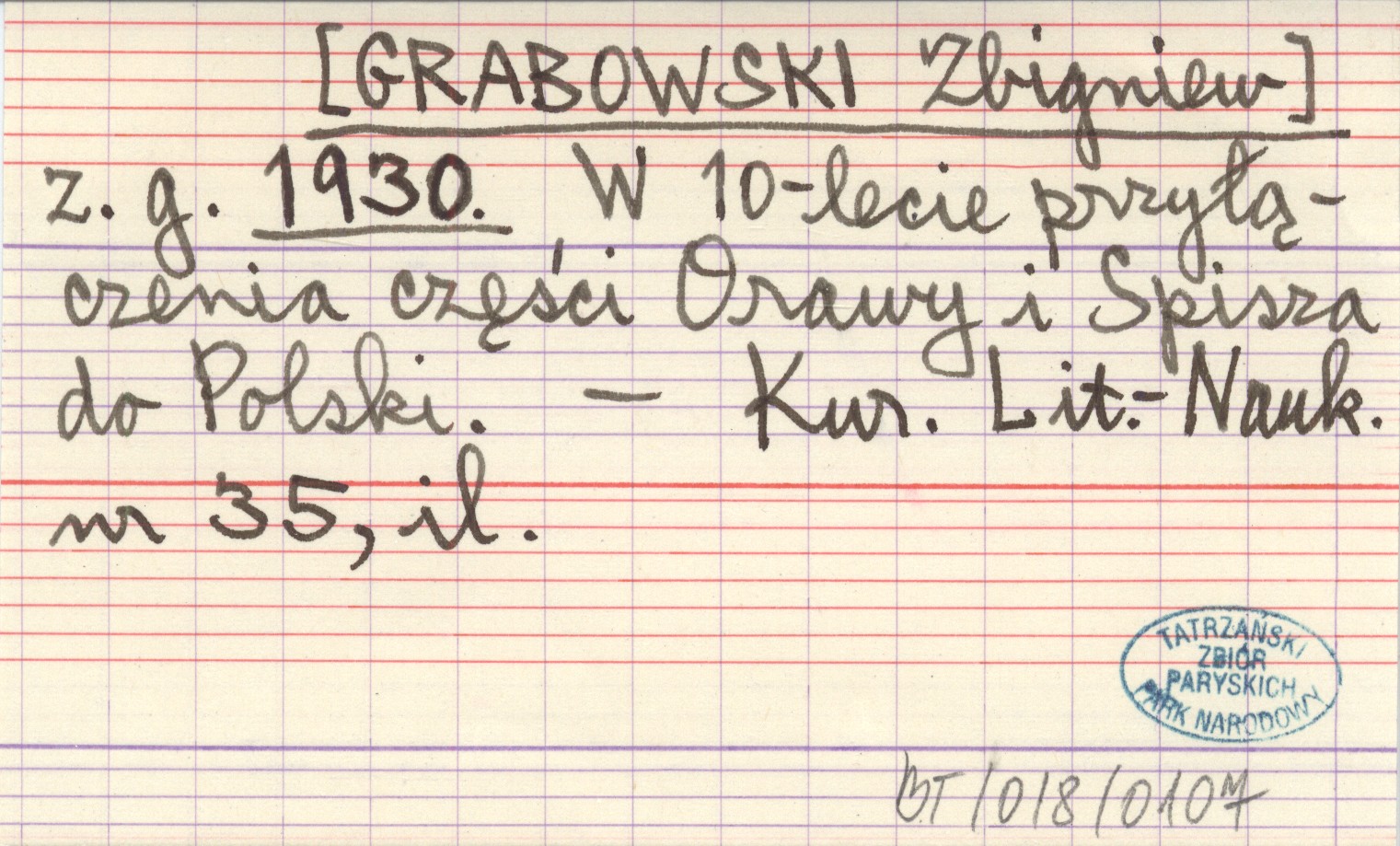 z. g. [GRABOWSKI Zbigniew] 1930 W 10-lecie przyłączenia części Orawy i Spisza do Polski.
