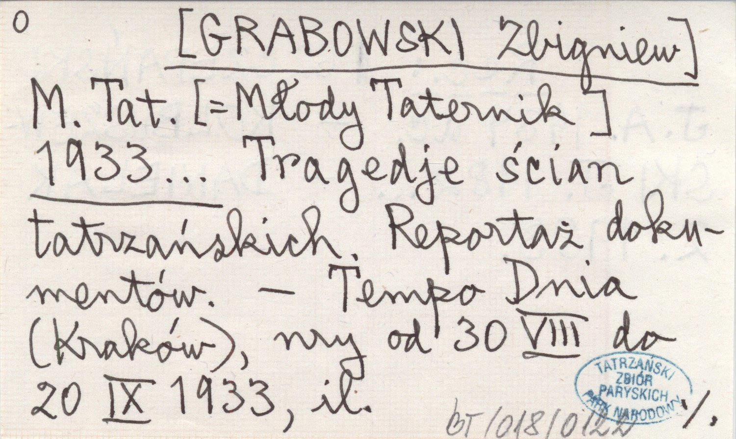 Projekt Digitalizacja fiszek z Bibliografią Tatr i Podtatrza Witolda Henryka Paryskiego jest finansowany ze środków Ministra Kultury i Dziedzictwa Narodowego oraz Tatrzańskiego Parku Narodowego.