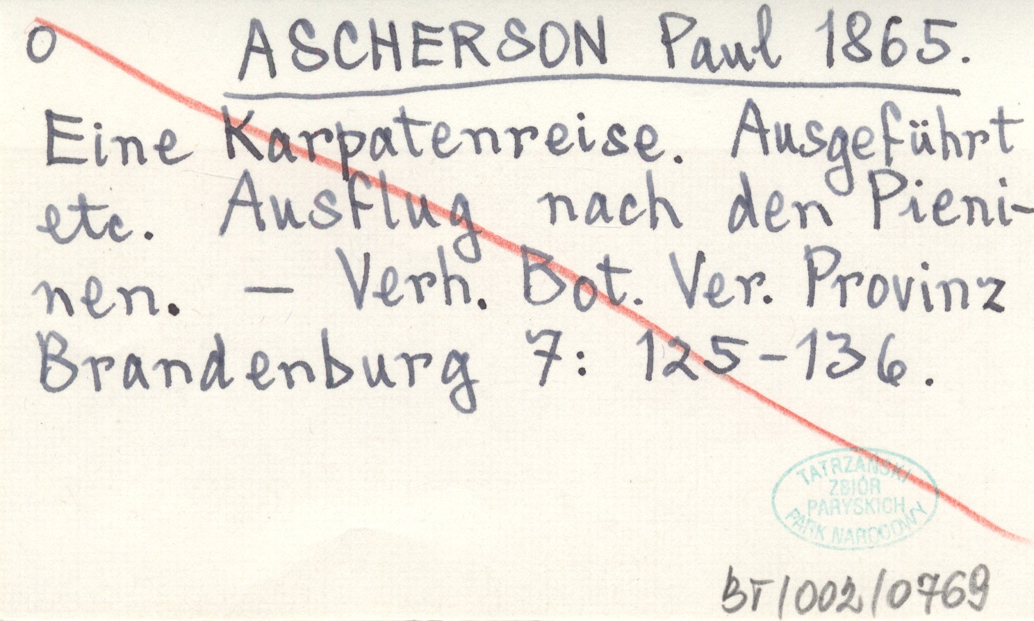 ASCHERSON Paul 1865 Eine Karpatenreise. Ausgeführt etc. Ausflug nach den Pieninen.