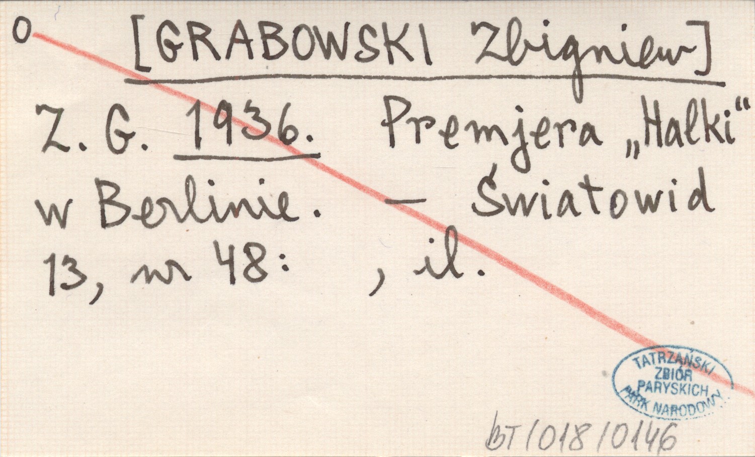 Z. G. [GRABOWSKI Zbigniew] 1936 Premjera "Halki" w Berlinie.
