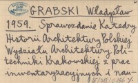 GRABSKI Władysław 1959 Sprawozdanie Katedry Historii Architektury Polskiej Wydziału Architektury Politechniki Krakowskiej z prac inwentaryzacyjnych i naukowo-badawczych nad polskim budownictwem ludowym.