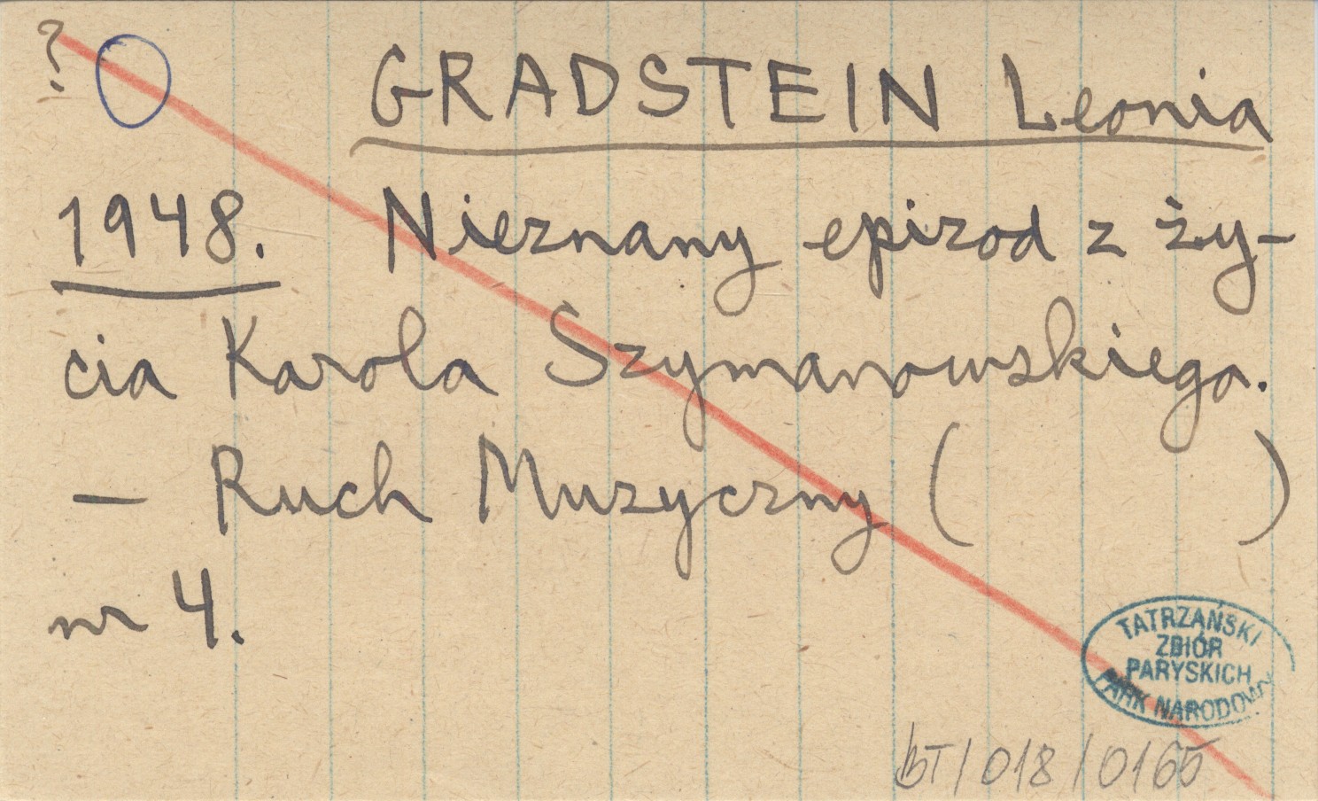 GRADSTEIN Leonia 1948 Nieznany epizod z życia Karola Szymanowskiego.