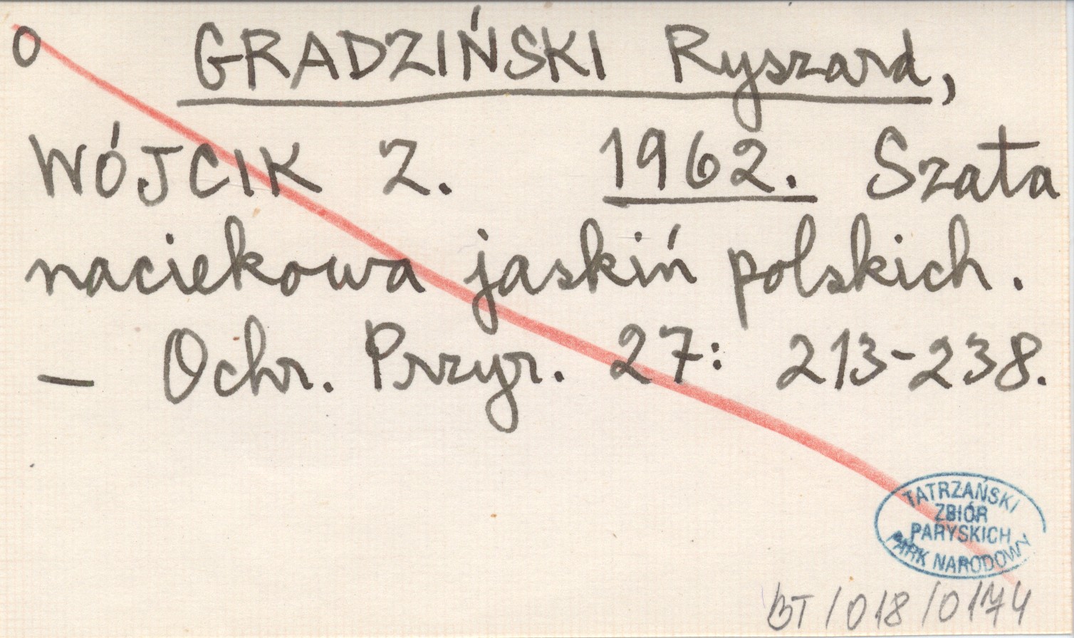 GRADZIŃSKI Ryszard WÓJCIK, Z. ; 1962 Szata naciekowa jaskiń polskich.