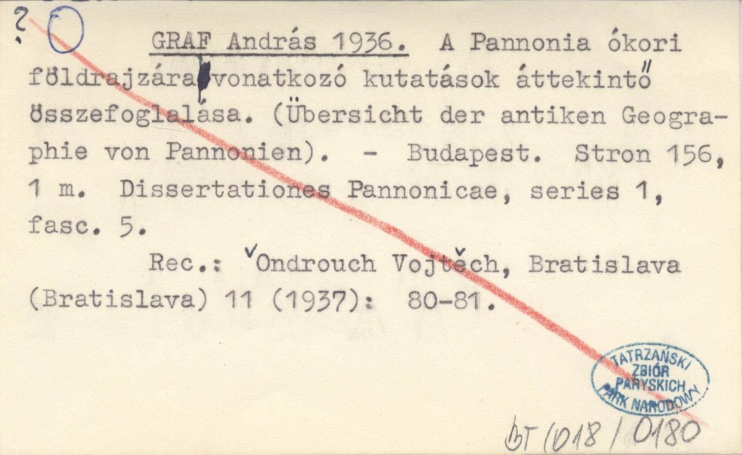 GRAF András 1936 A Pannonia ókori földrajzára vonatkozó kutatások áttekintő összefoglalása. (Übersicht der antiken Geographie von Pannonien).
