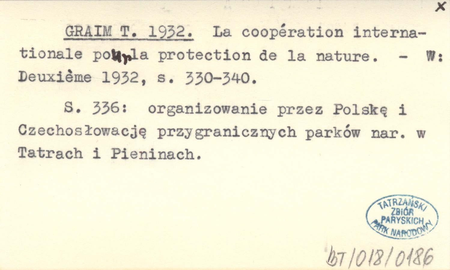 Deuxiéme 1932. , S. 330-340. S. 336: organizowanie przez Polskę i Czechosłowację przygranicznych parków nar. w Tatrach i Pieninach.