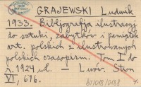 GRAJEWSKI Ludwik 1933 Bibljografja ilustracyj do sztuki, zabytków i pamiątek art. polskich z ilustrowanych polskich czasopism. Tom I do r. 1924 wł.