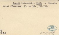 Granit tatrzański. 1906