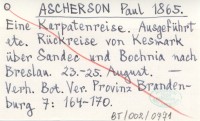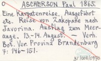 ASCHERSON Paul 1865 Eine Karpatenreise. Ausgeführt etc. Rückreise von Kesmark über Sandec und Bochnia nach Breslau. 23-25 August.