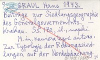 GRAUL Hans 1943 Beiträge zur Siedlungsgeographie des Generalgouvernements.
