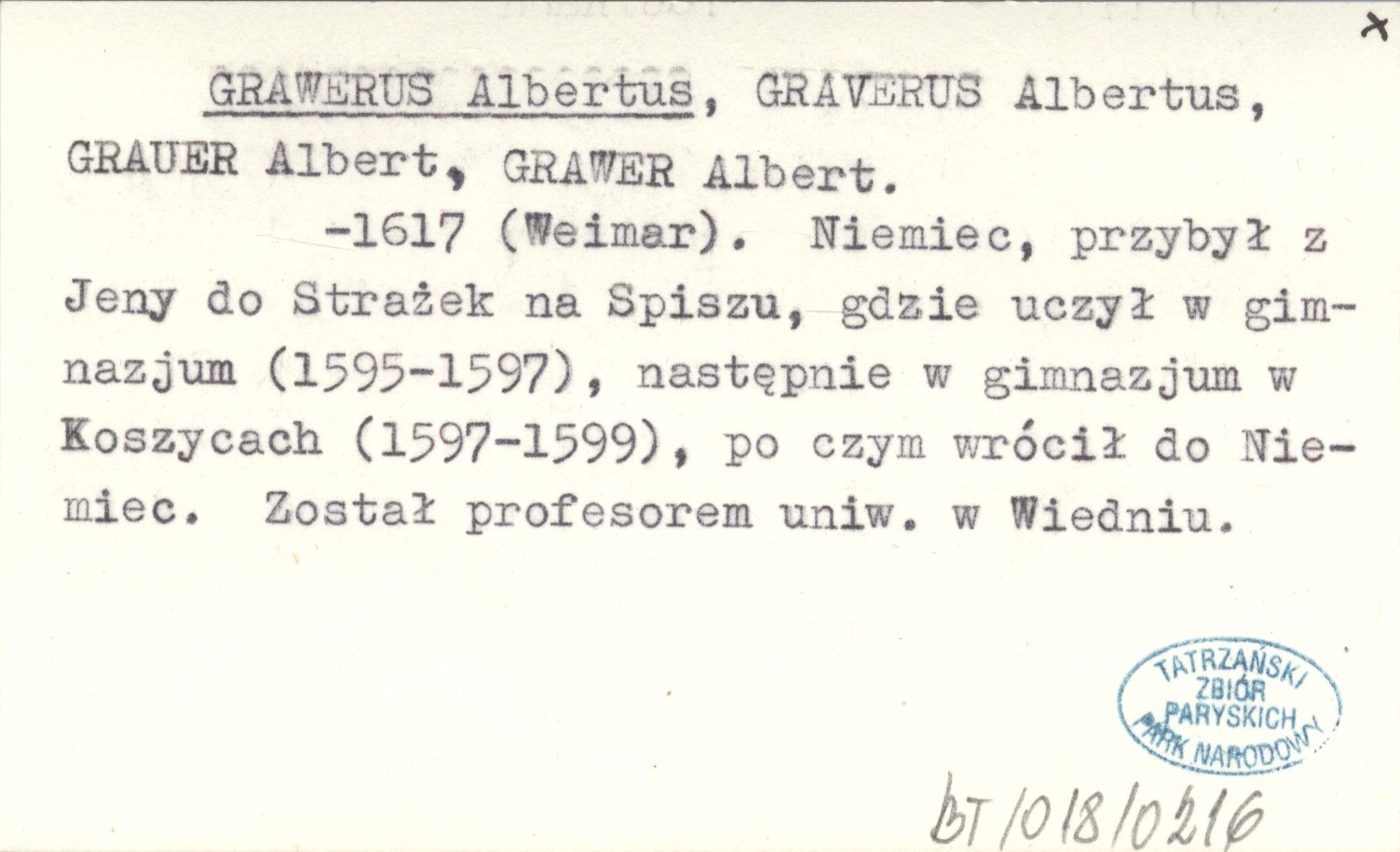 GRAVERUS Albertus ; GRAUER Albert ; GRAWER Albert GRAWERUS Albertus