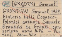 GRONDSKI Samuel [GRĄDZKI Samuel] 1789 Historia belli Cosacco- Polonici authore Samuele Grondski de Grondi conscripta anno 1676.