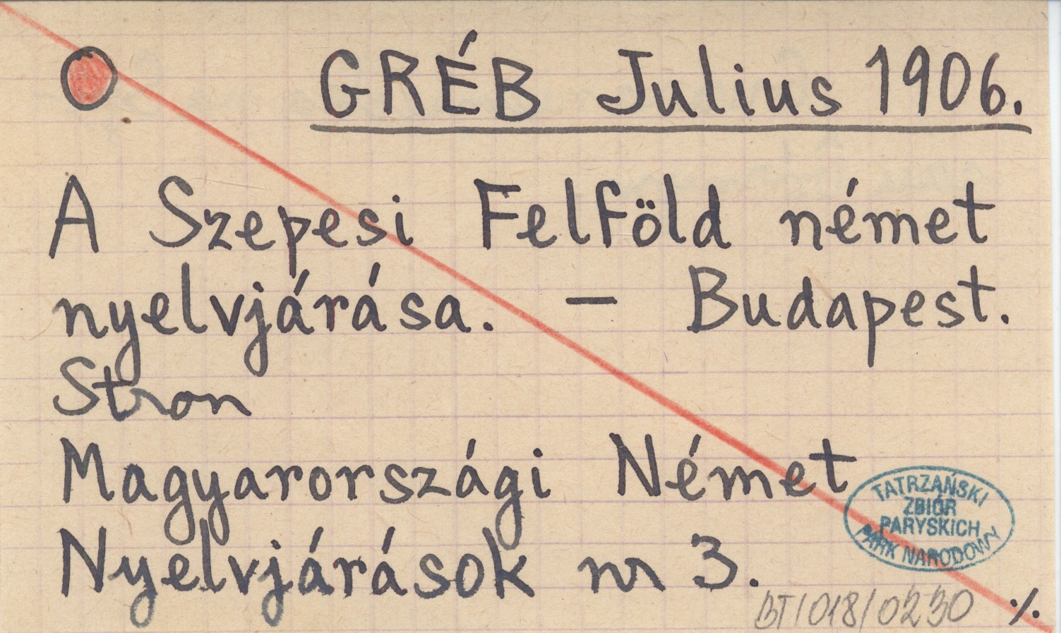 GRÉB Julius 1906 A Szepesi Felföld német nyelvjárása.