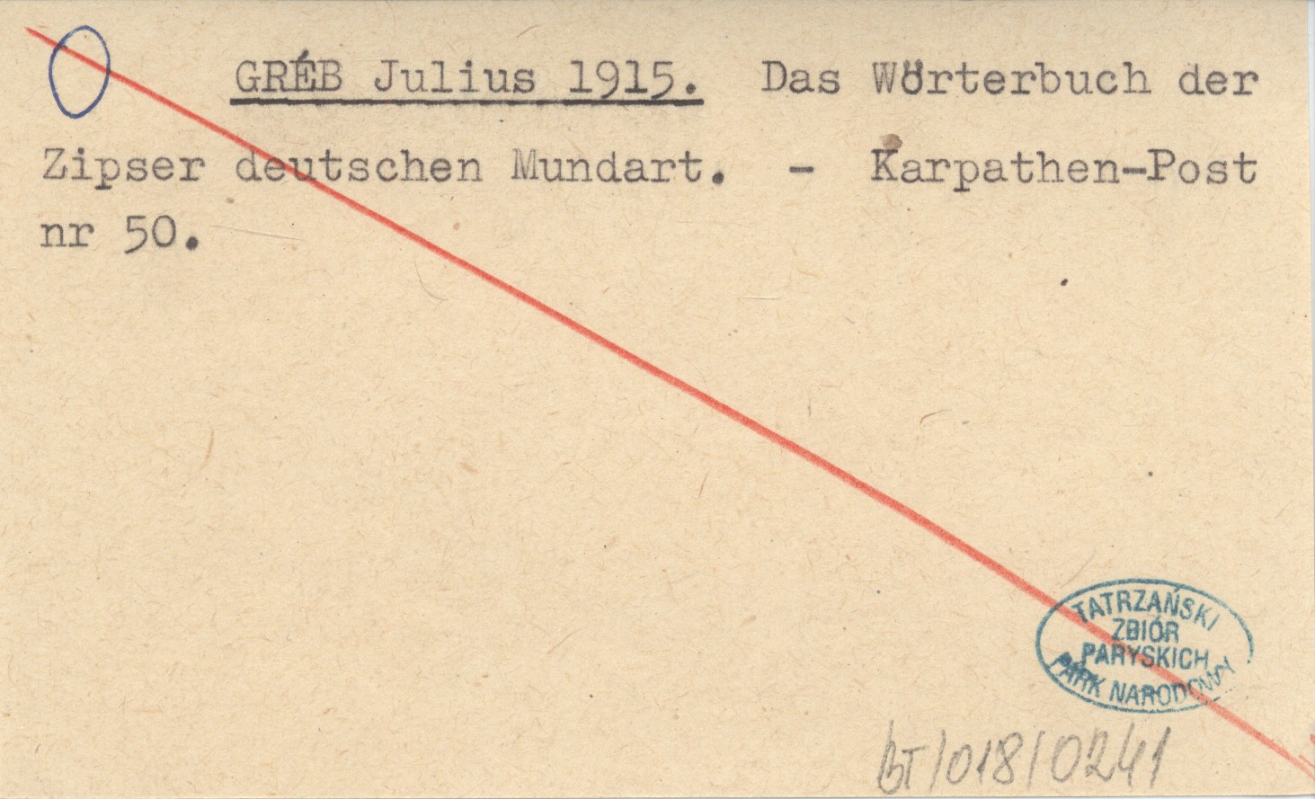 GRÉB Julius 1915 Das Wörterbuch der Zipser deutschen Mundart.