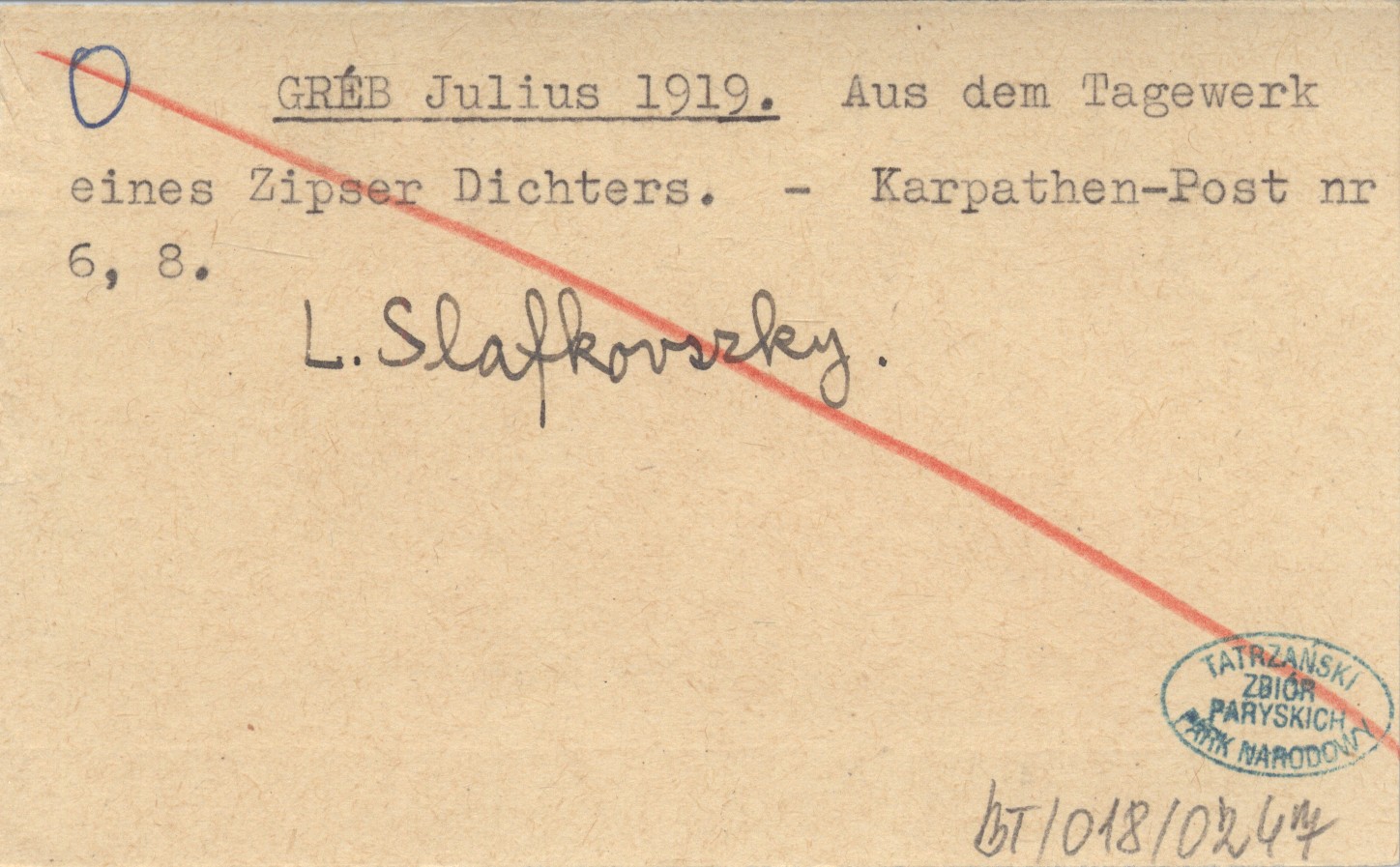 GRÉB Julius 1919 Aus dem Tagewerk eines Zipser Dichters.