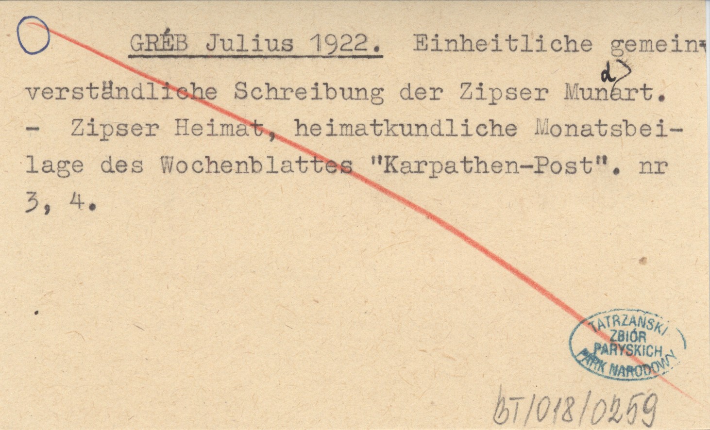 GRÉB Julius 1922 Einheitliche gemein verständliche Schreibung der Zipser Mundart.