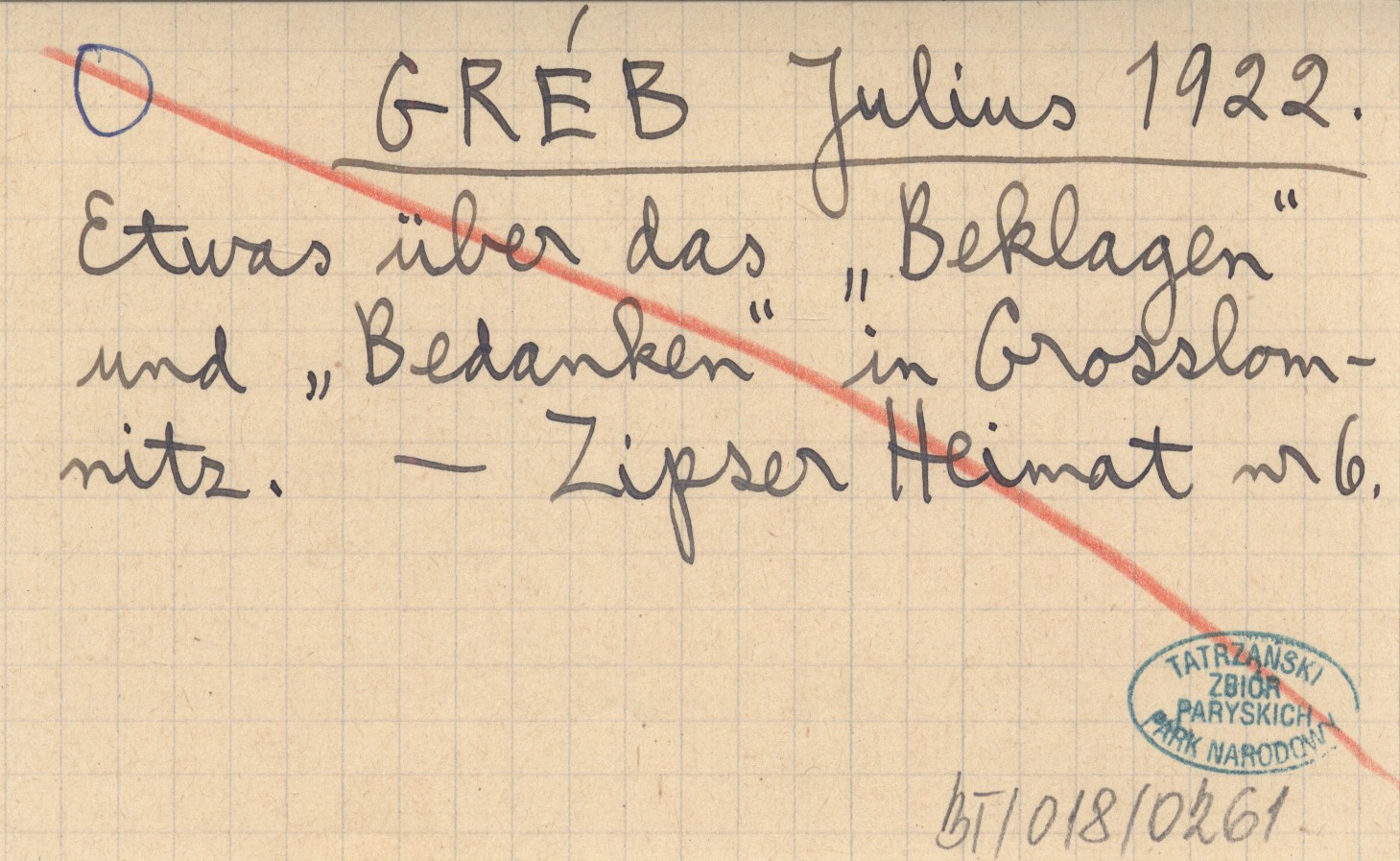GRÉB Julius 1922 Etwas über das "Beklagen" und "Bedanken" in Grosslomnitz.