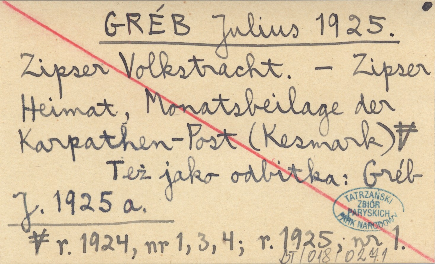 Zipser Heimat, Monatsbeilage der Karpathen-Post (Kesmark) , R. 1924, nr 1, 3, 4; r. 1925, nr 1. Też jako odbitka: Grés J. 1925 a