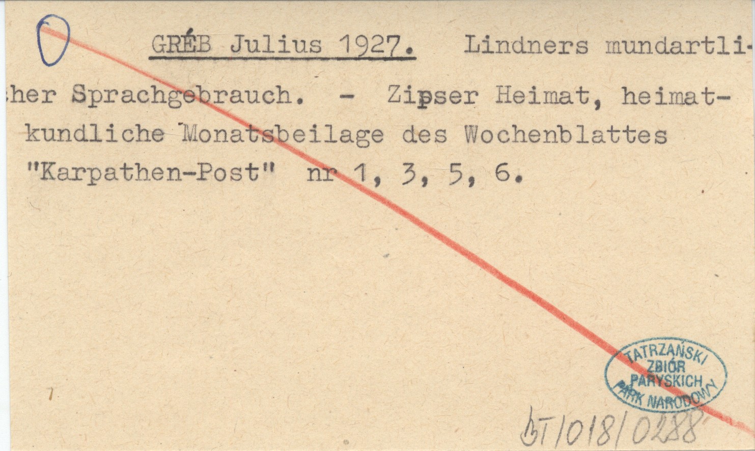 GRÉB Julius 1927 Lindners mundartlicher Sprachgebrauch.