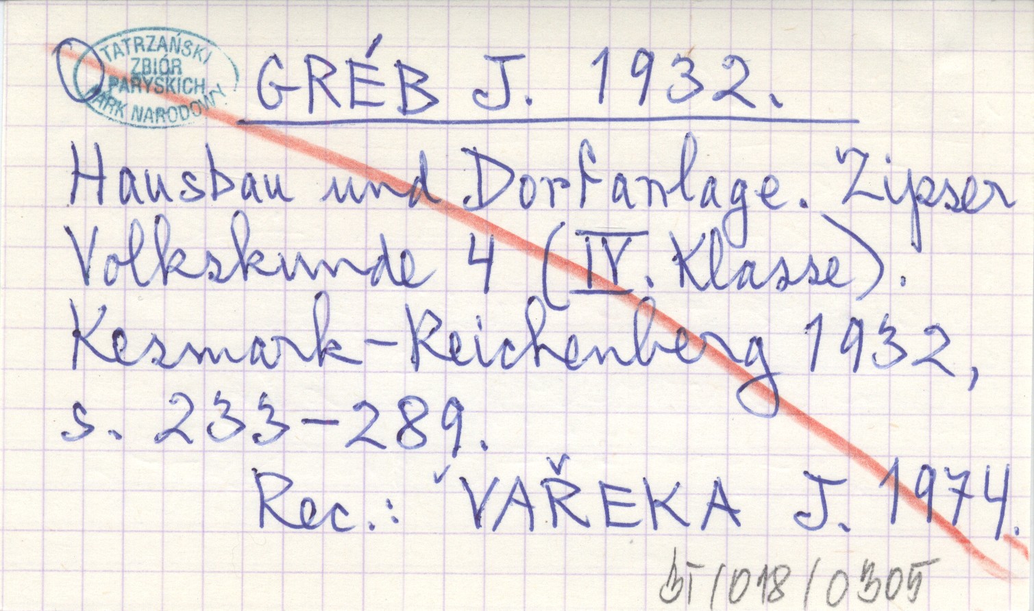 GRÉB J. 1932 Hausbau und Dorfanlage. Zipser Volkskunde 4 (IV. Klasse).