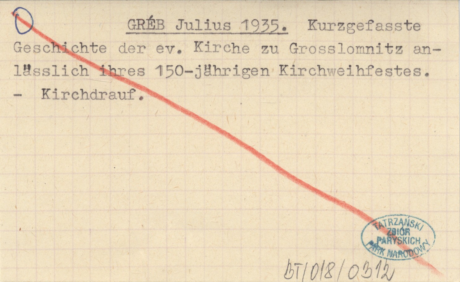 GRÉB Julius 1935 Kurzgefasste Geschichte der ev. Kirche zu Grosslomnitz anlässlich ihres 150-jährigen Kirchweihfestes.