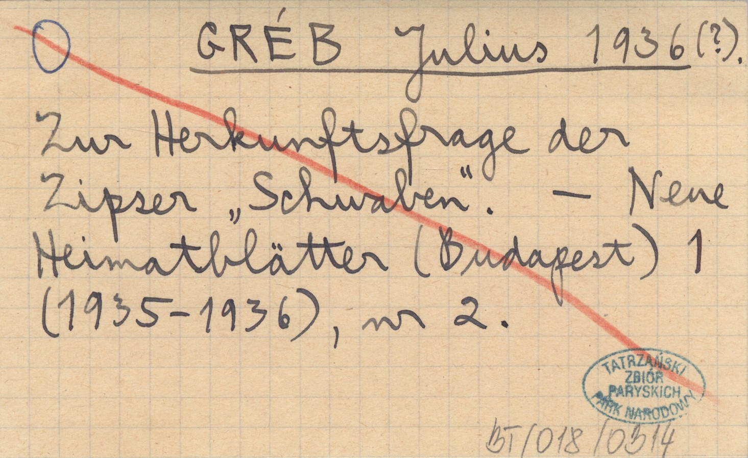 GRÉB Julius 1936 (?) Zur Herkunftsfrage der Zipser "Schwaben".