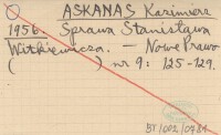 ASKANAS Kazimierz 1956 Sprawa Stanisława Witkiewicza.