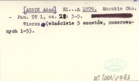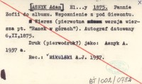 El...y [ASNYK Adam] 1875 Pannie Zofii do albumu. Wspomnienie z pod Giewontu.