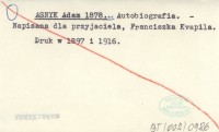 ASNYK Adam 1878... Autobiografia.