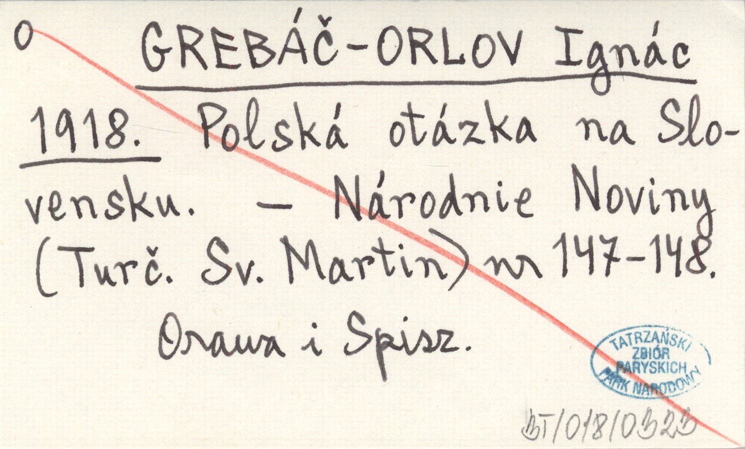 GREBÁČ-ORLOV Ignác 1918 Polská otázka na Slovensku.