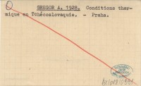 GREGOR A. 1928 Conditions thermique en Tchécoslovaquie.