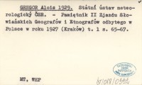 GREGOR Alois 1929 Státní ústav meteorologický ČSR.