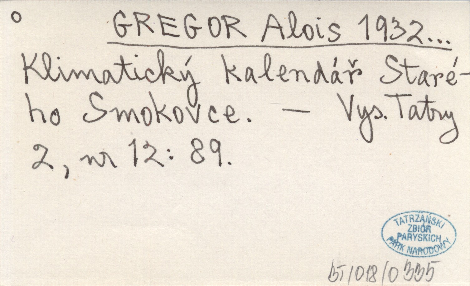 GREGOR Alois 1932... Klimatický kalendář Starého Smokovce.